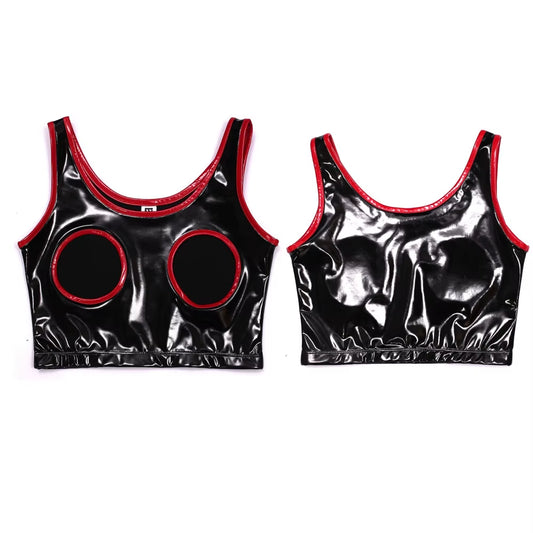 Open Chest Sexy Underwear Tank Top Sleevele Vest PVC Mirror Faux Latex Leather Waistcoat Body Shaper Exposed Breast Erotic Tops