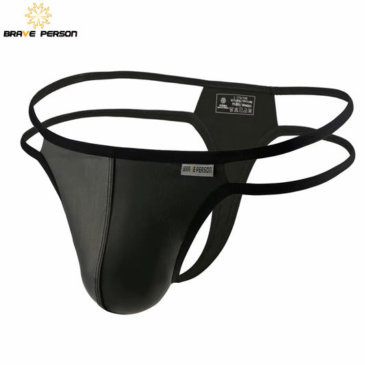 Men Briefs Sexy Underwear Men Thongs Imitation Leather Fabric Double Belts Design Sissy Panties Thongs for Man